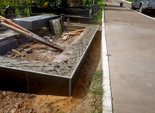 Далее устанавливаем подставки под памятники, заливаем их бетоном и ещё раз кладём подложку.
