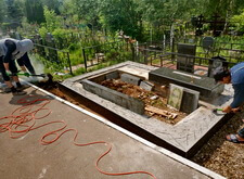 Укрываем место захоронения геотекстилем и приступаем к сборке и установке памятников.