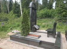 У подножья памятника клеим ранее изготовленную книгу, по обе стороны от неё укрепляем вазы. В расположенную в отдалении от надгробья клумбу сажаем тую.